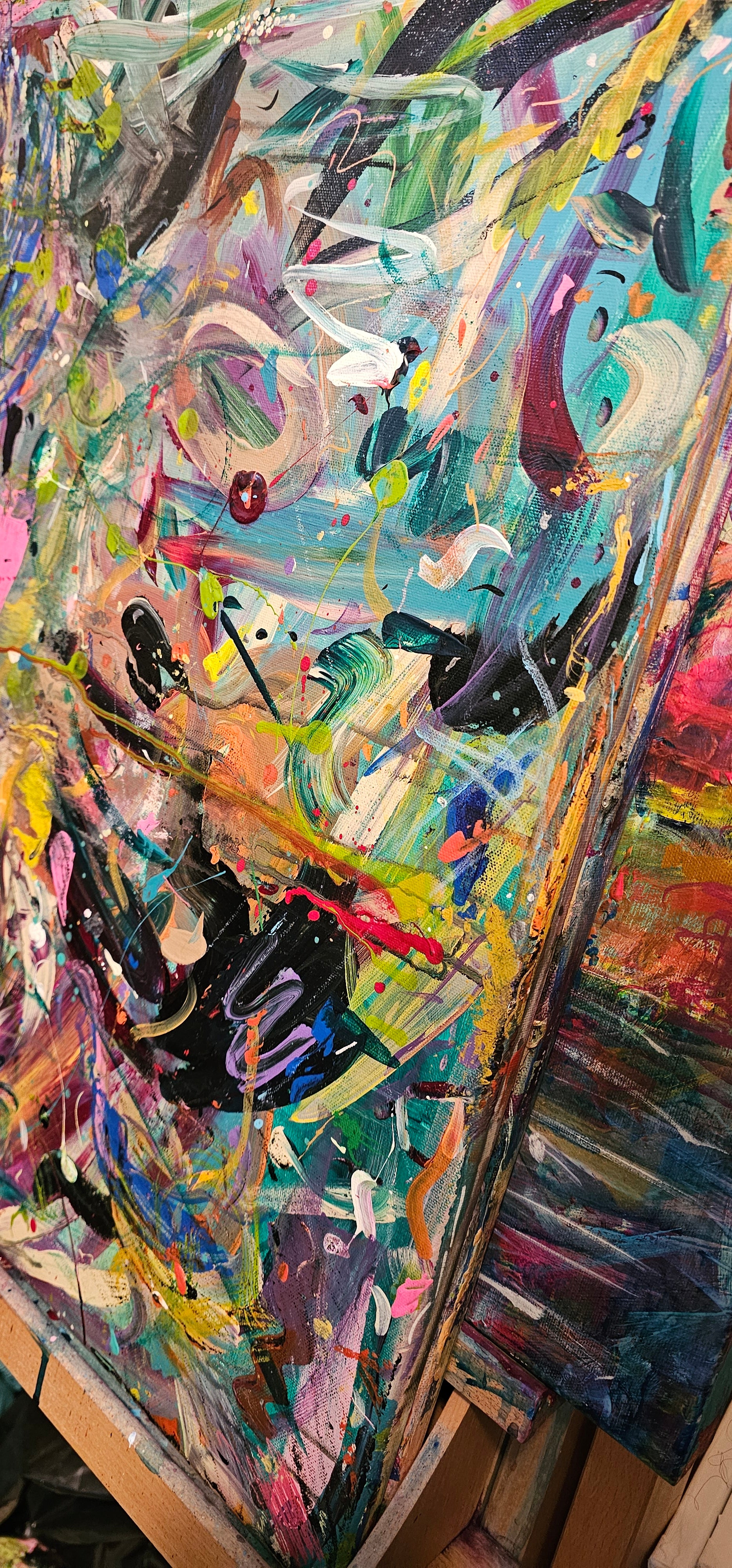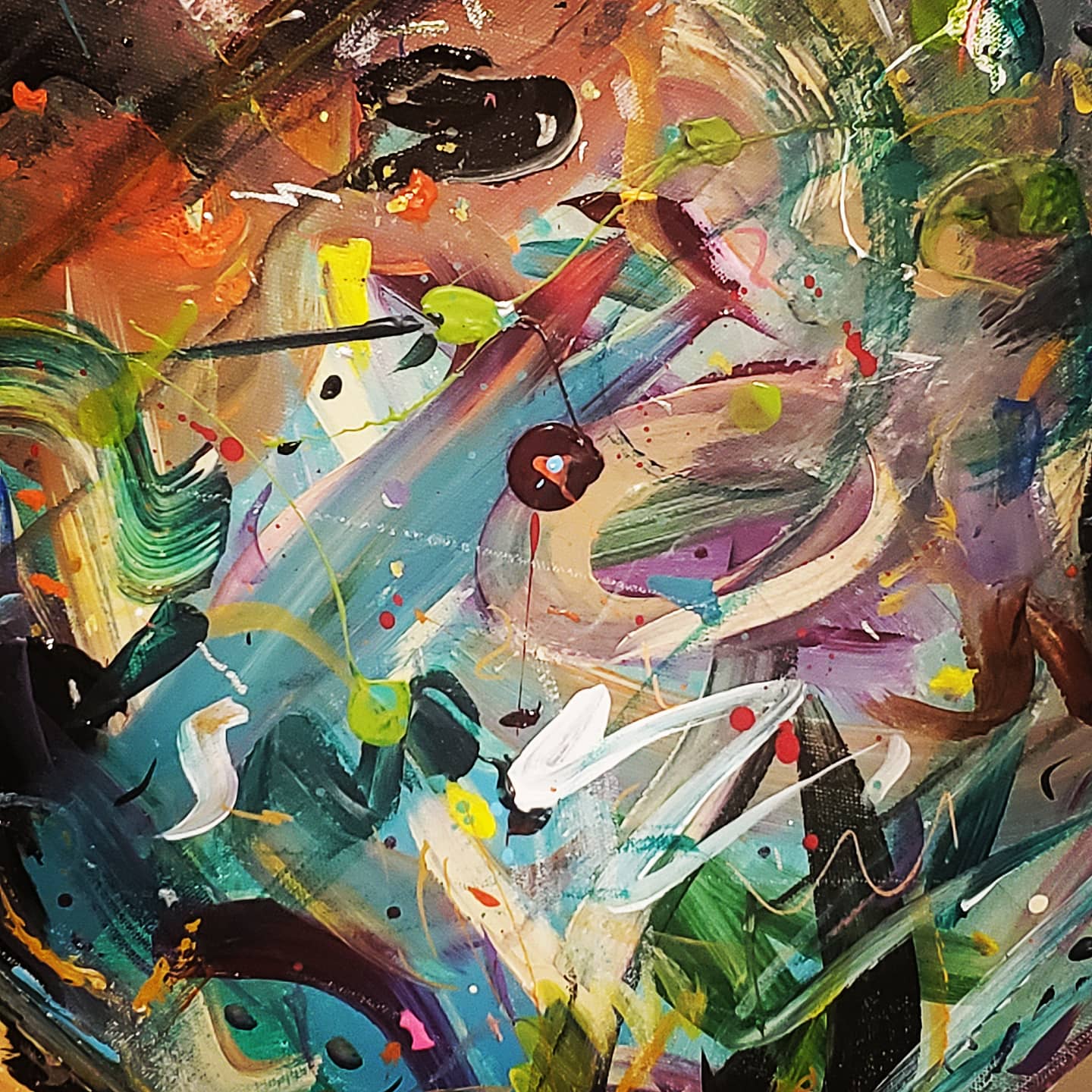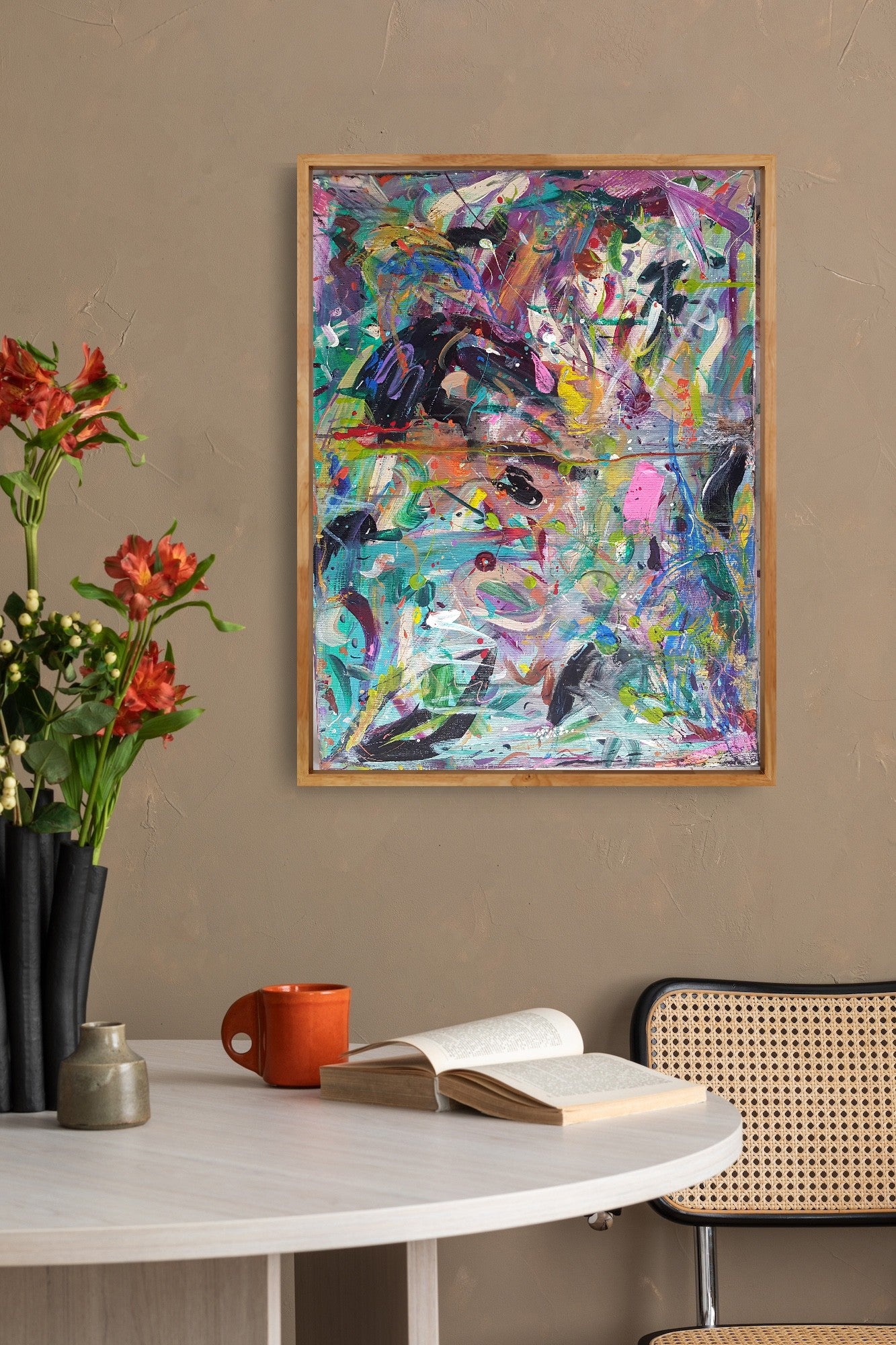 Original abstract art on 18x24 inch gallery wrapped canvas. Mixed media materials.